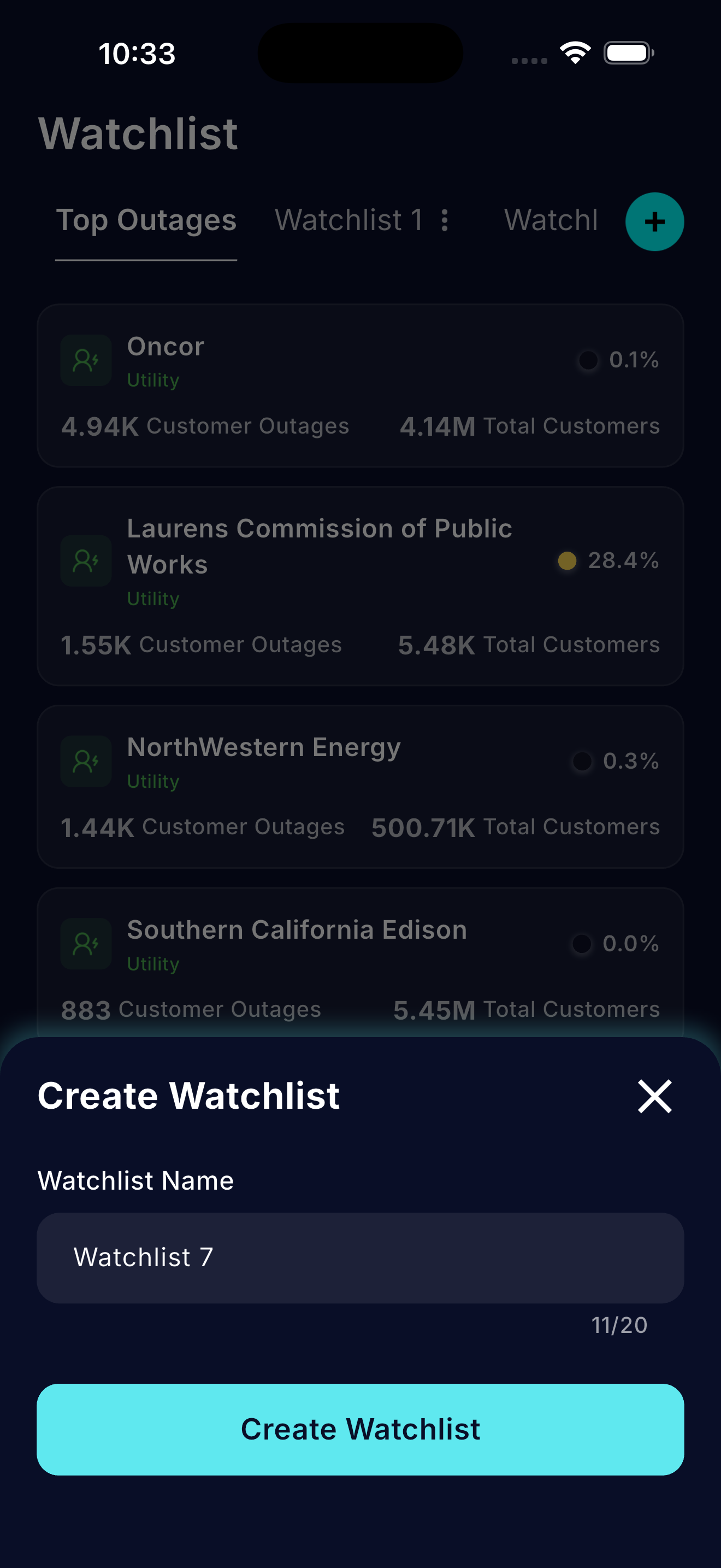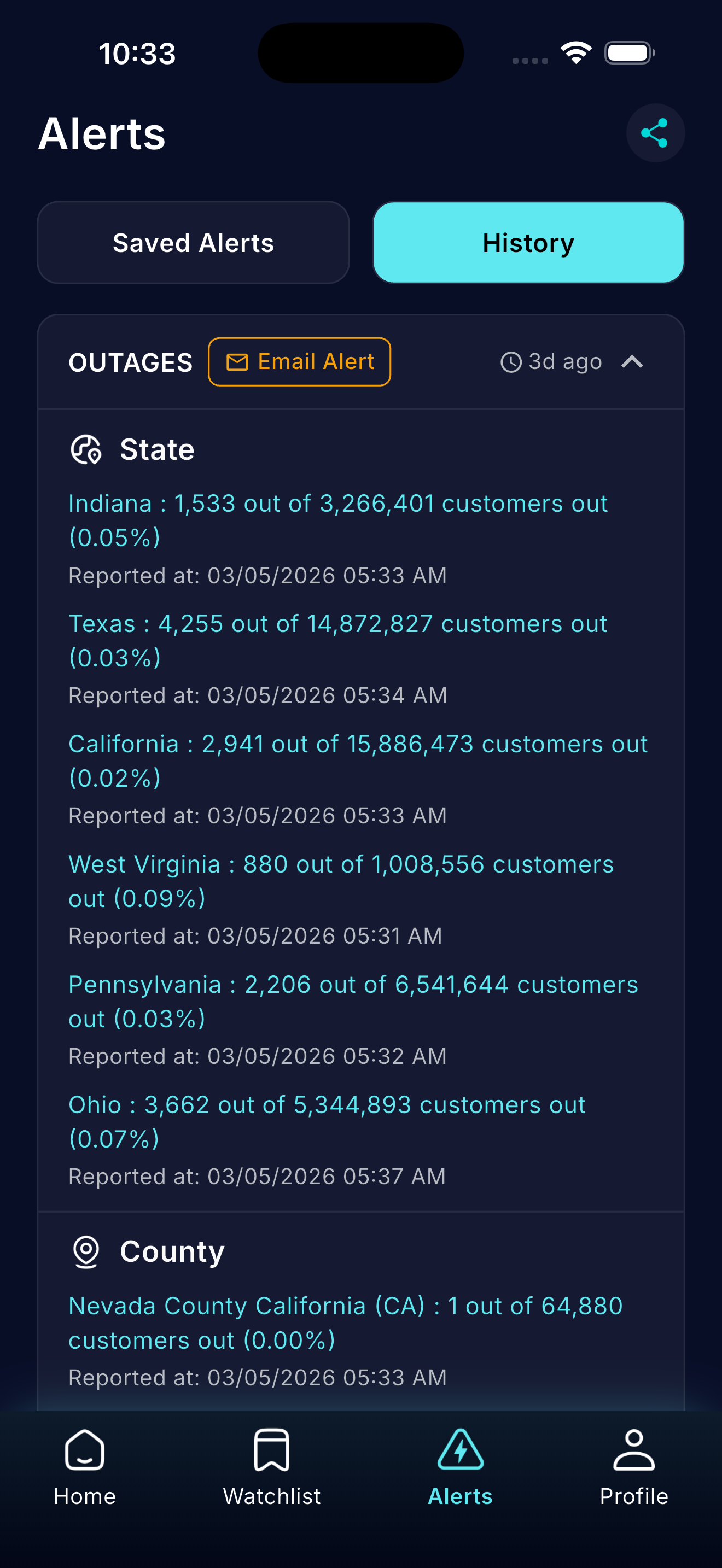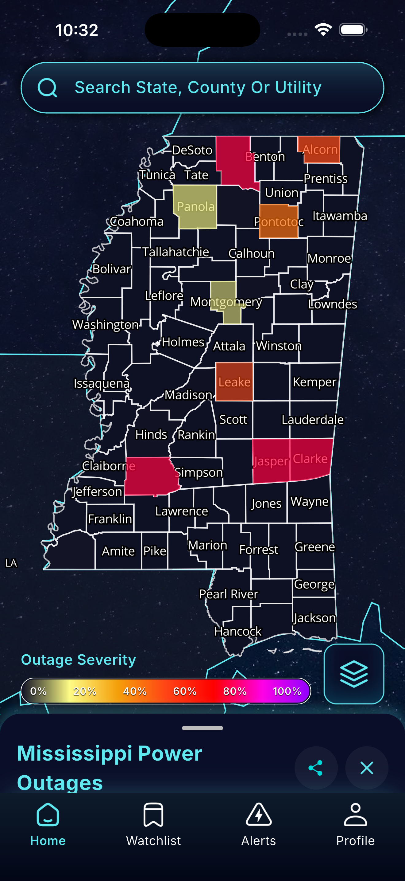Overlay radar, rain, and snow data to understand weather conditions affecting outages.