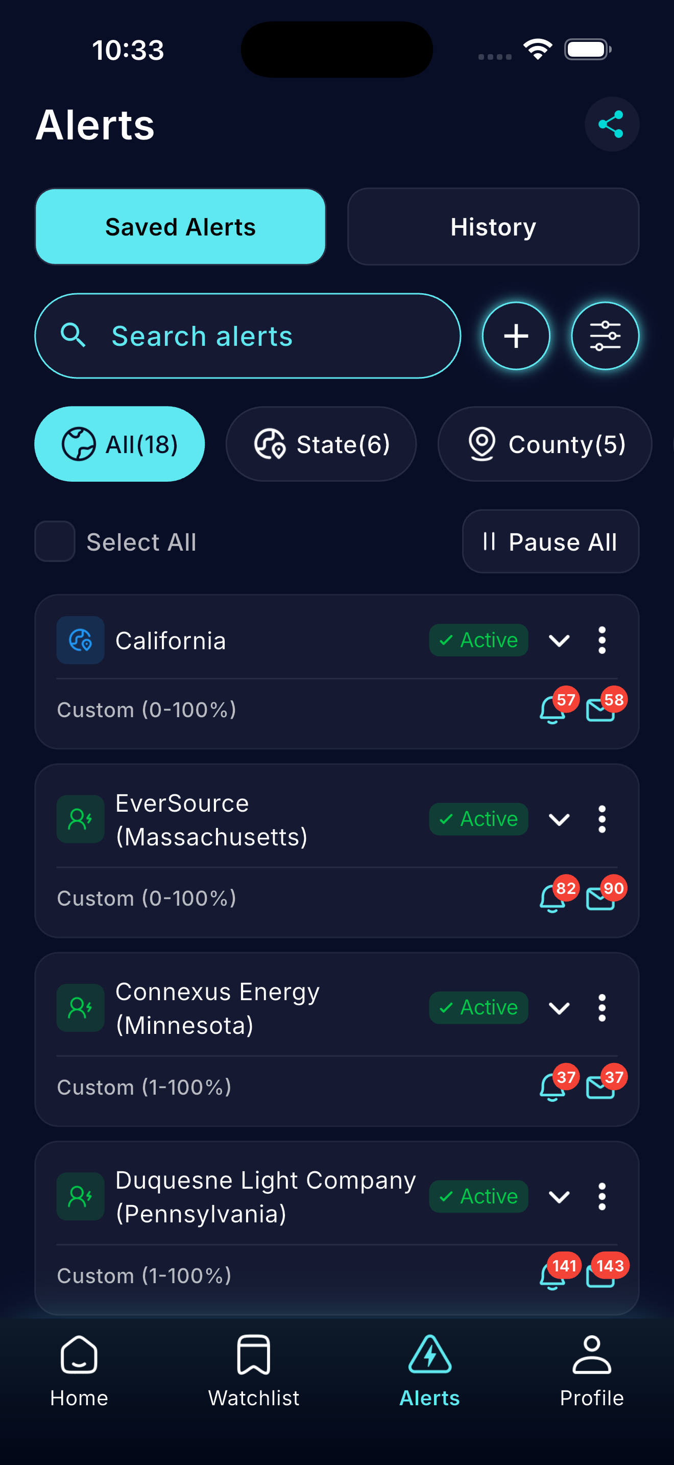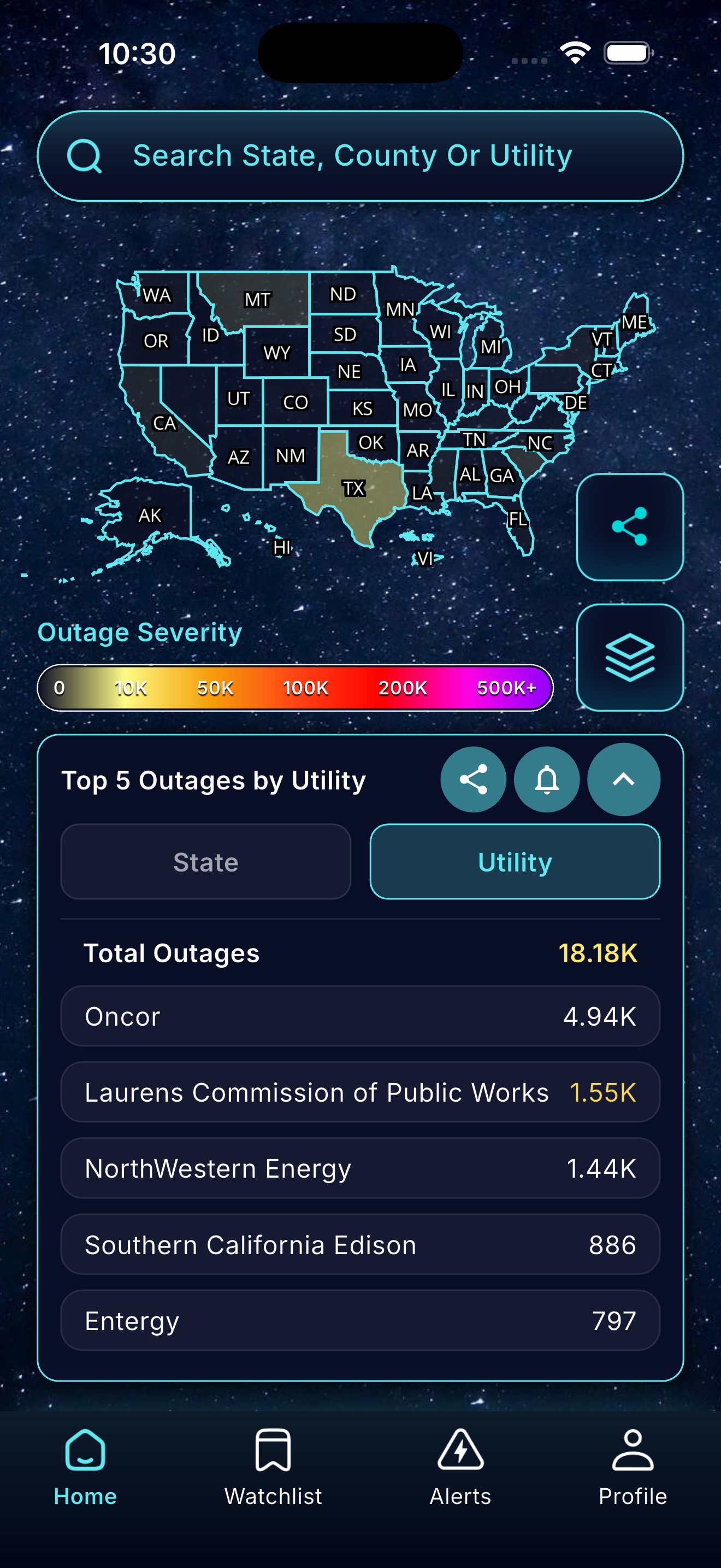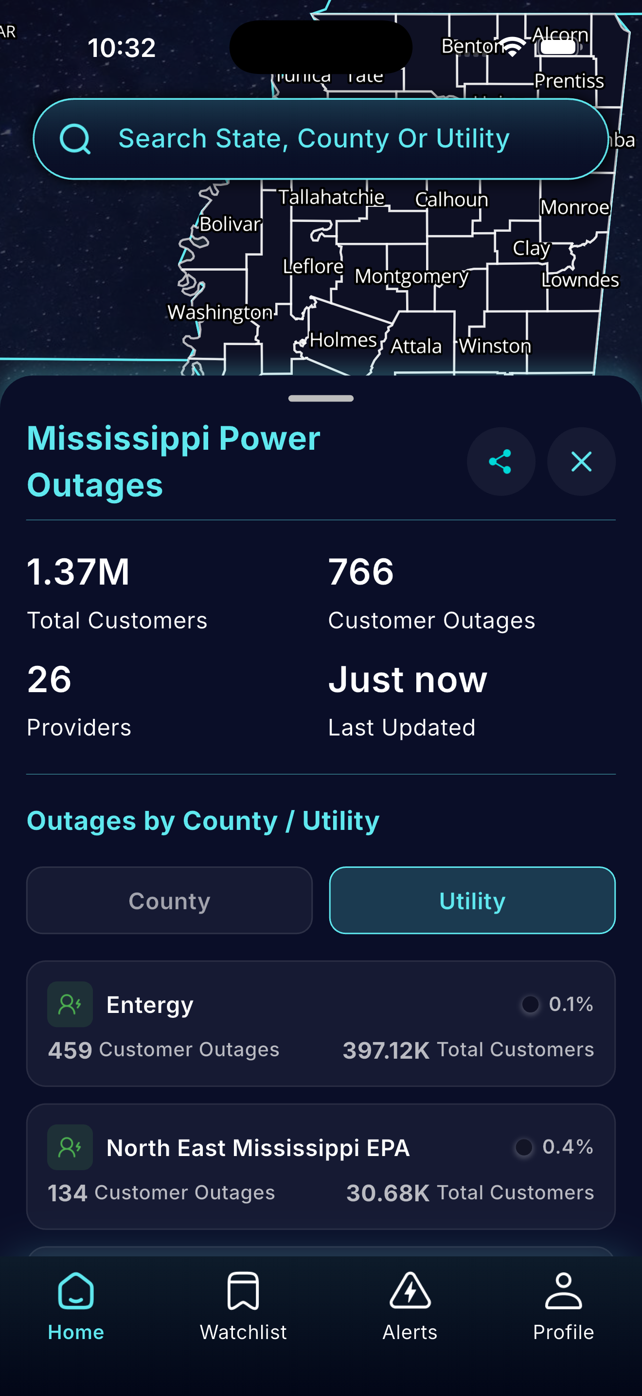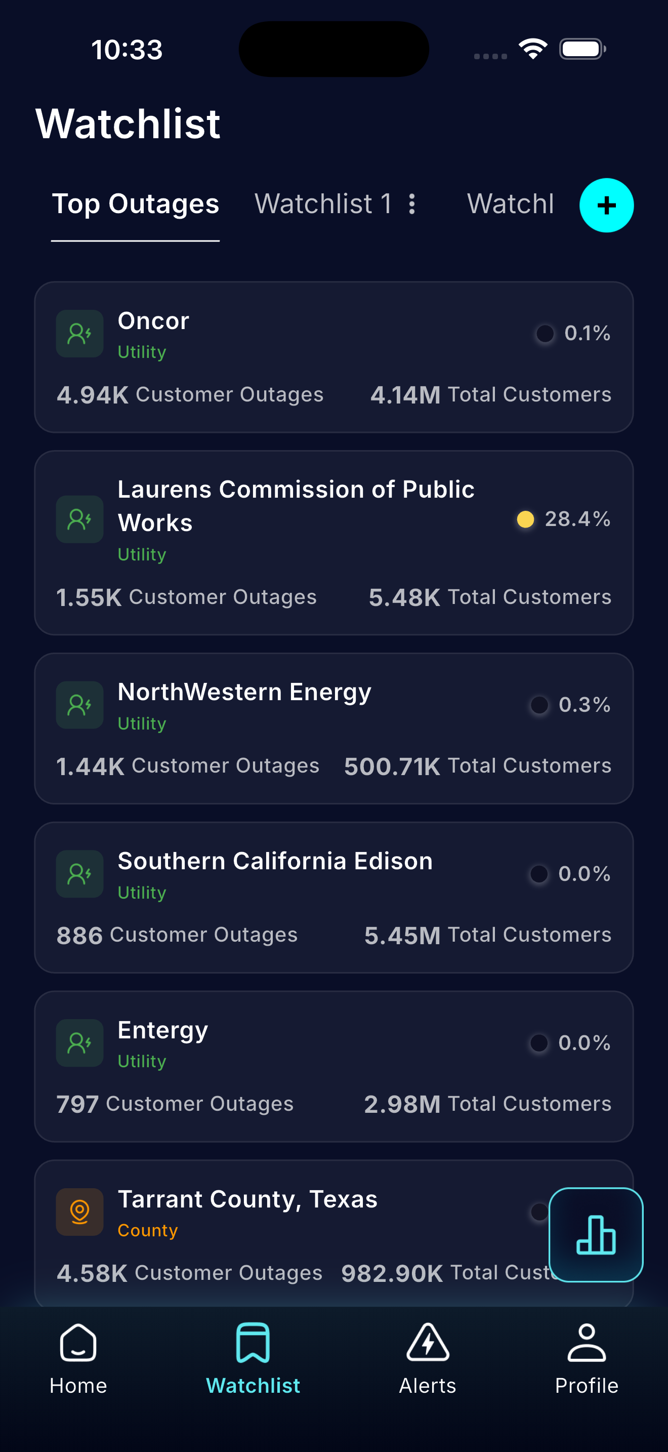 Overlay radar, rain, and snow data to understand weather conditions affecting outages.